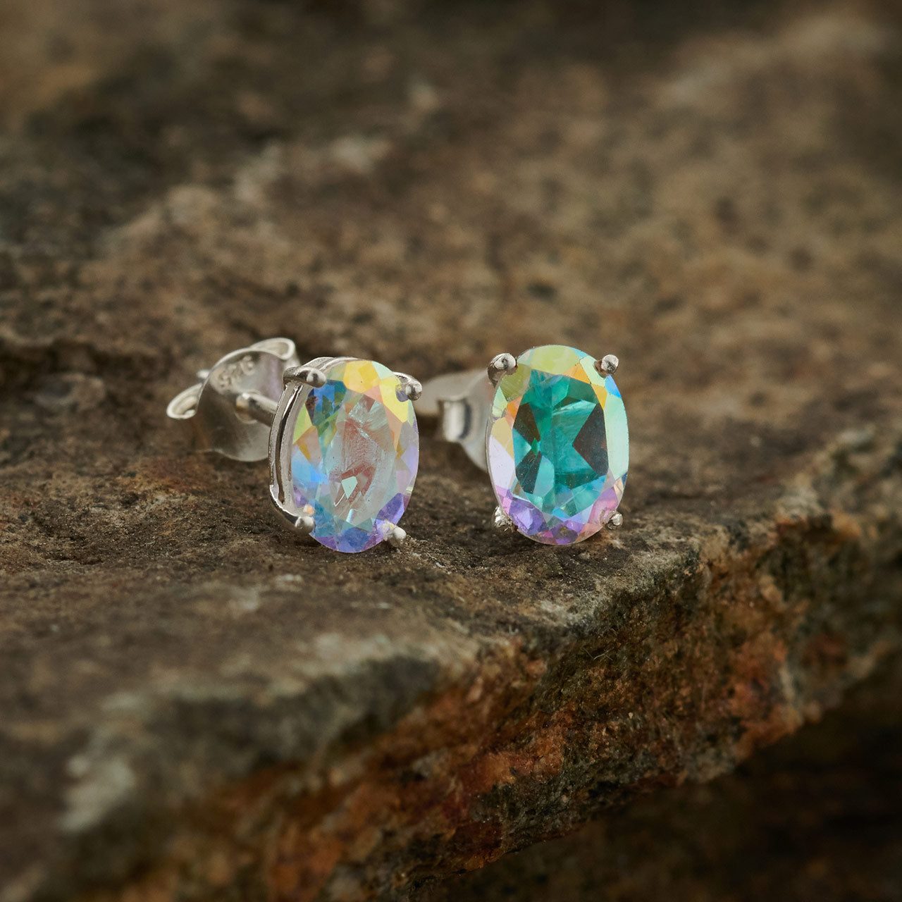 Our selection of earring styles includes studs, bezels, and dangles for rough, cabochon, and faceted stones. Settings include cast prong, handmade claw, and bezel options. Handpicked, shapes may vary.