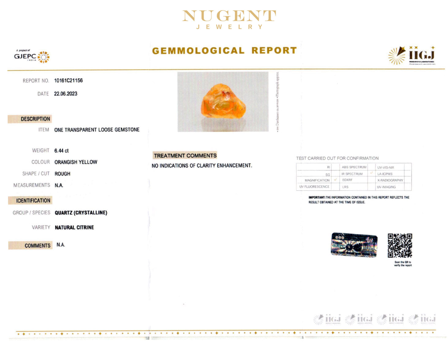 Citrine Stone Certification